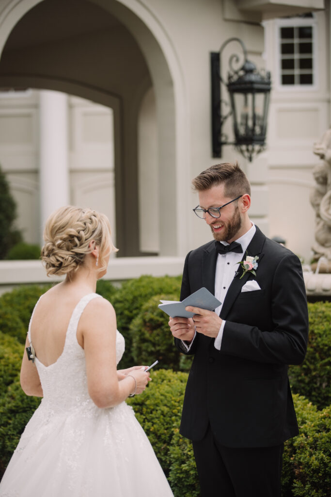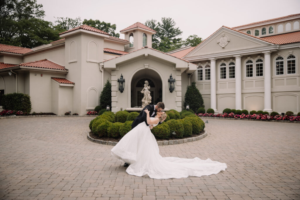 They wanted their wedding to feel Mediterranean without asking guests to travel. Staying local ensured every family member could attend, while the architecture and grounds delivered the European atmosphere Kayla loved. Nanina’s reputation — especially for its cocktail hour and Venetian hour — also mattered. Guest experience was part of their decision from the beginning.